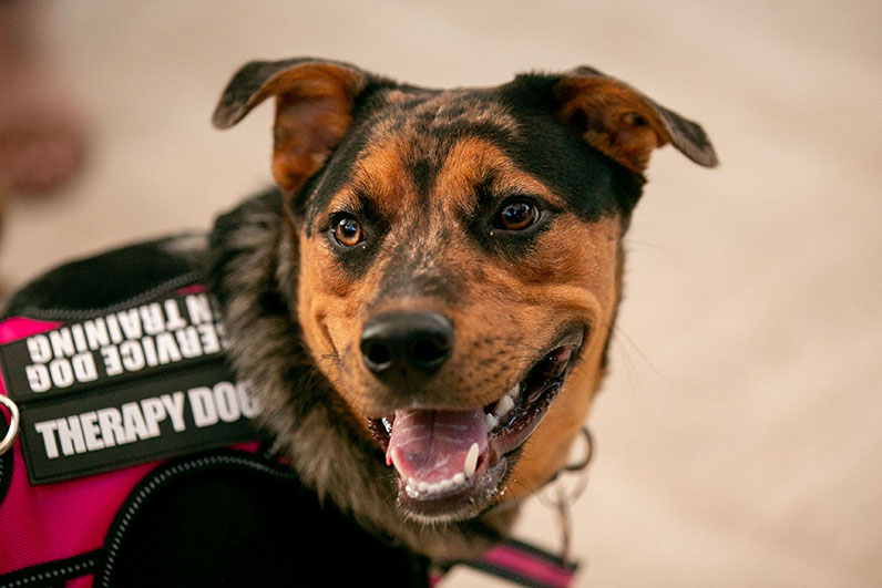 Sadie is our specifically trained dog to help improve the physical, emotional, and social well-being of individuals.